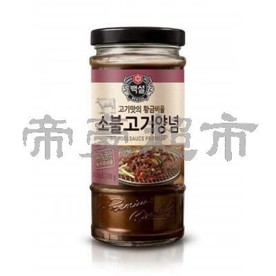 Ingredients: Soy Sauce (Water, Soybean, Salt, Wheat, Lactic Acid (E270), Succinic Acid (E363), Sugar, Apple Puree (Apple, Vitamin C), Onion, Pear Puree (Pear, Vitamin C), Garlic, Salt, Rice wine (Rice, Alcohol, Enzyme, Glucose), Water, Seasoning Extract (Hydrolysed Vegetable Protein, Corn Syrup, Gluten, Maltodextrin, Glycine, Yeast Extract, Disodiuminosiate, Dextrin, Potassium Acid tartrate (E336), Tassium phosphate (E340)), Leek Extract (Leek, Fructose Corn Syrup), Ginger Extract (Ginger, Fructoss Corn Syrup), Caramel, Black Pepper Powder Citiric Adic (E472a), Xanthan Gum (E415), Sesame.
